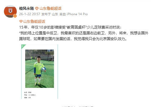 开云体育下载-泰山博主晒出彭啸10岁照片,彭啸曾说想留洋,在国内就为国安效力